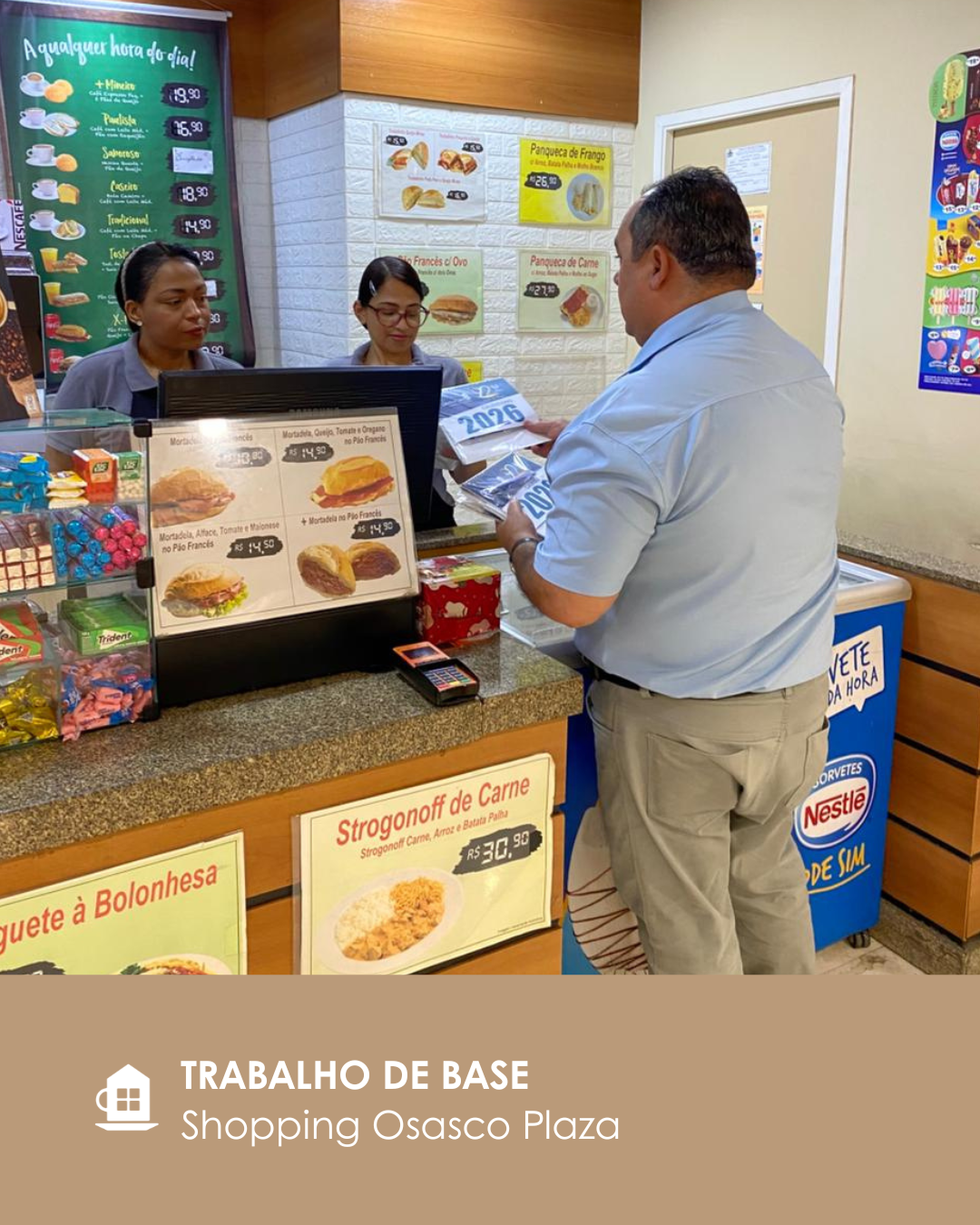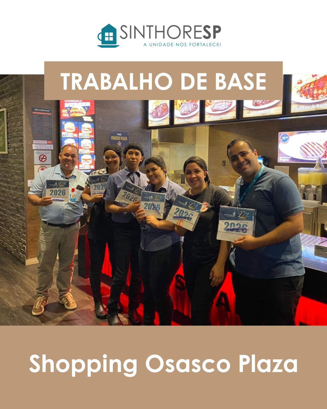 A Regional Osasco do Sinthoresp realizou mais uma ação de trabalho de base com os trabalhadores de estabelecimentos do Osasco Plaza Shopping, com diálogo direto no local de trabalho, entrega do calendário 2026 e reforço da presença do sindicato no dia a dia da categoria. A iniciativa teve como objetivo ouvir as demandas dos trabalhadores, esclarecer dúvidas sobre direitos previstos em Convenção Coletiva de Trabalho e fortalecer o vínculo entre o sindicato e a base.